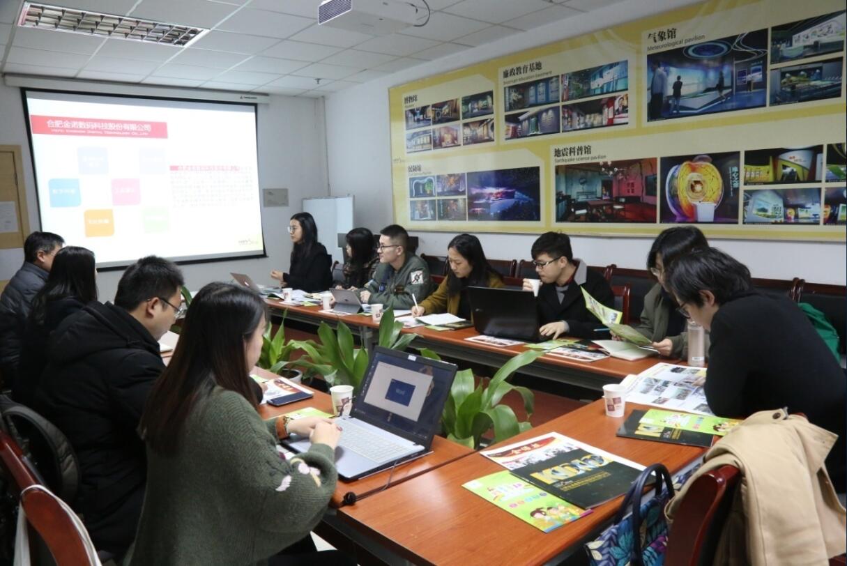调研团一行详细地了解了公司经营范围、产品和技术特点、标准化产品、策划生产过程、商业模式、市场概况及人才培养等情况,并饶有兴趣的参观体验公司数字科普展厅。博士生团队成员纷纷表示此次调研收获颇丰,也为高校新媒体教科书的后续撰写提供大量实用素材。