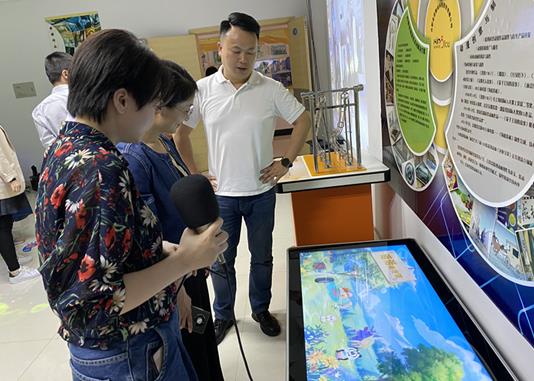 调研组一行首先参观了公司的数字多媒体展厅,依次观看并体验了金诺科技最新研发的互动体验产品,包括系列体感互动游戏、VR科普产品、裸眼3D影片、诺诺动物园等项目,丰富多彩的互动内容在数字技术的灵活运用下趣味呈现,令调研组一行交口称赞,眼界大开。